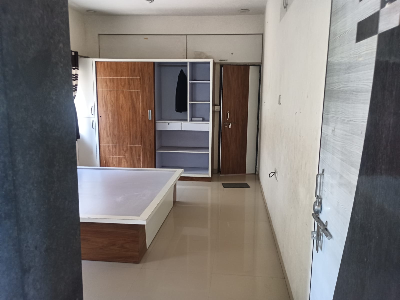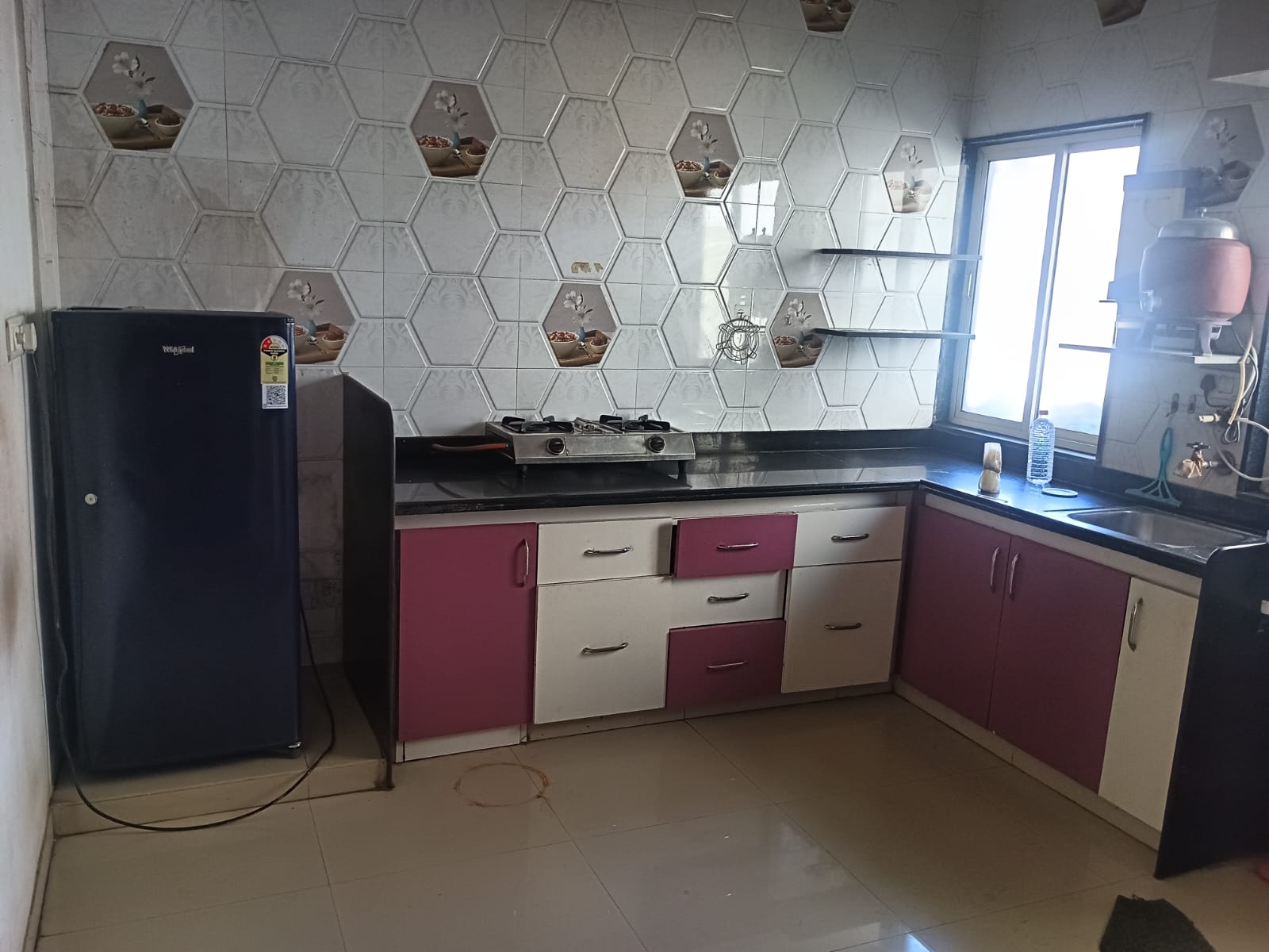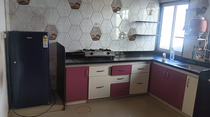 As seen in photo water purifier, freeze, kitchen cabinet, wardrobe, double bed, sofa, tv cabinet, tijori, hichko, store room, gas stove & bottle.