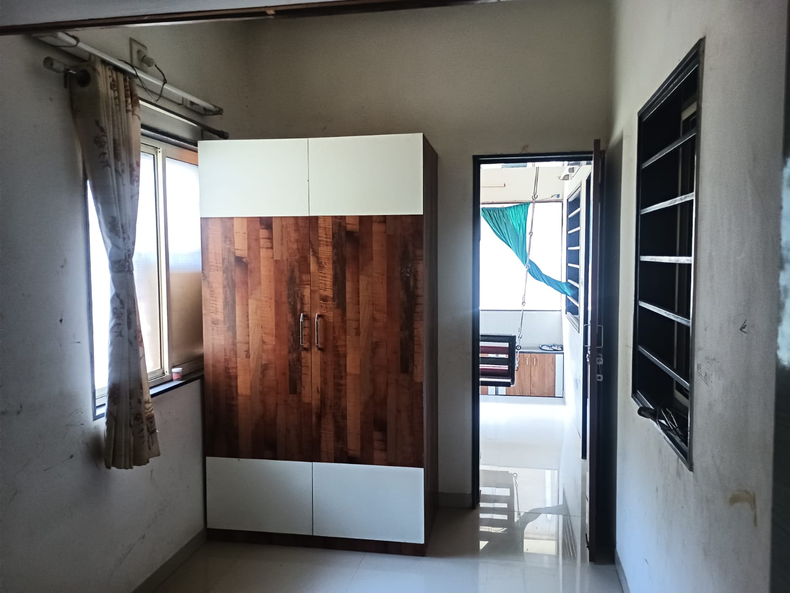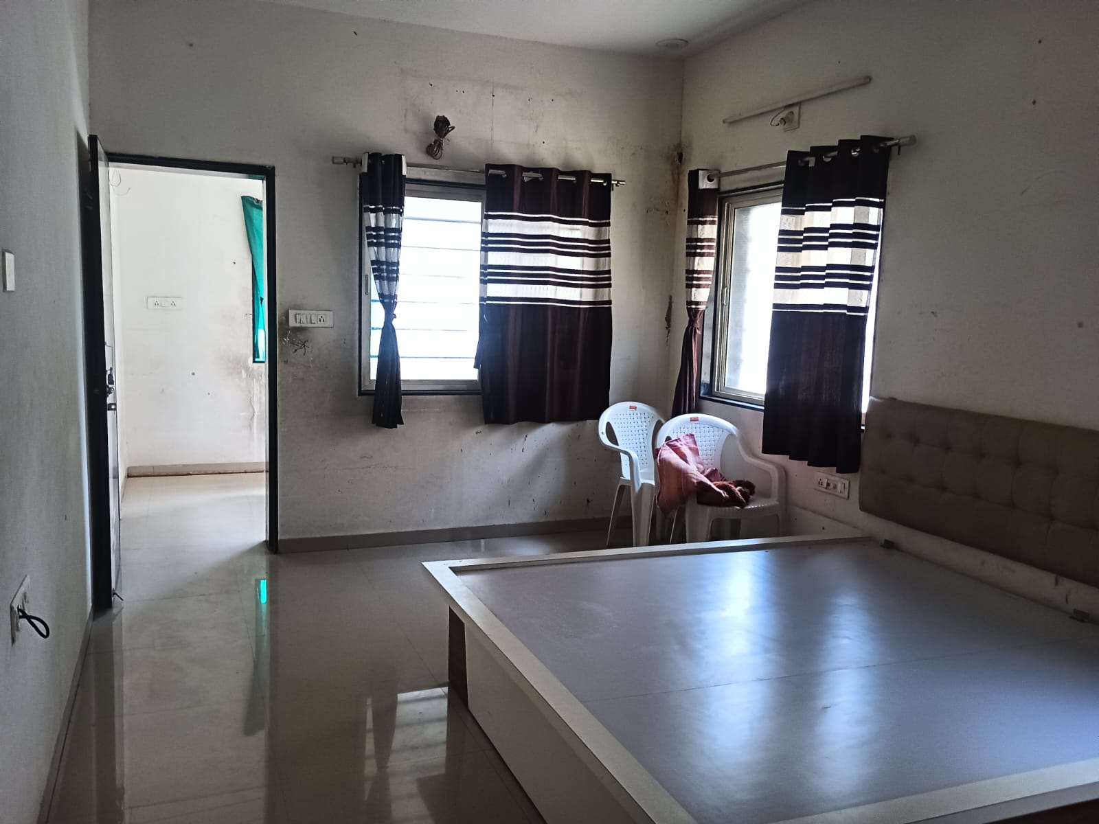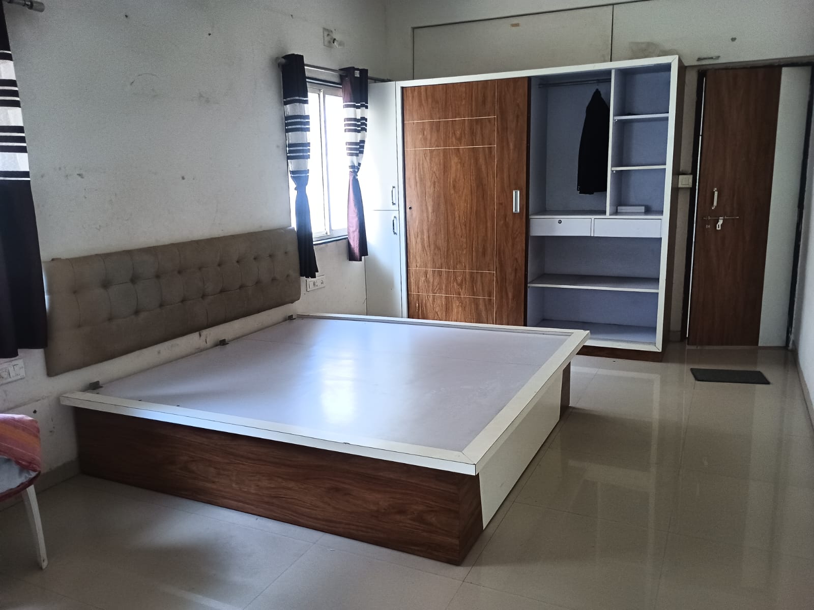As seen in photo water purifier, freeze, kitchen cabinet, wardrobe, double bed, sofa, tv cabinet, tijori, hichko, store room, gas stove & bottle.
